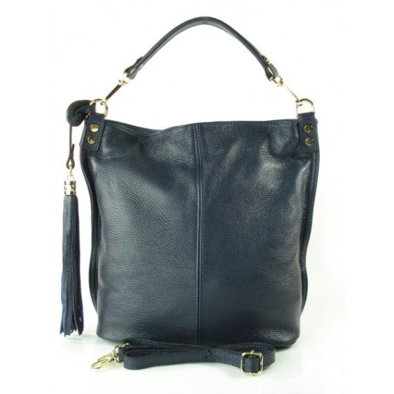 GRANATOWY WOREK VERA PELLE ZŁOTE OKUCIA POJEMNY A4 WŁOSKA TORBA W76BS
