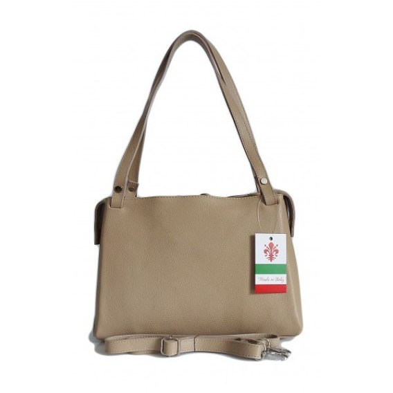 Klasyczna miękka torebka na ramię ,trzy komory ,Włoska skórzana Vera Pelle , Beż LB35T