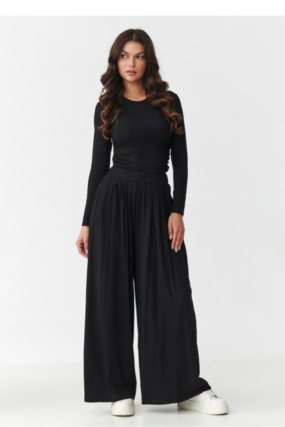 Komfortowy komplet bluzka z długim rękawem + szerokie spodnie czarny