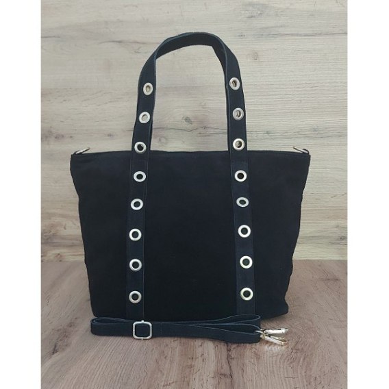 Skórzany Włoski worek ,torba na ramię Vera Pelle miękki zamsz złote dżety-kółka, pojemna A4 Czarna WZK25N
