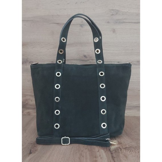 Skórzany Włoski worek ,torba na ramię Vera Pelle miękki zamsz złote dżety-kółka, pojemna A4 Zielony WZK25V