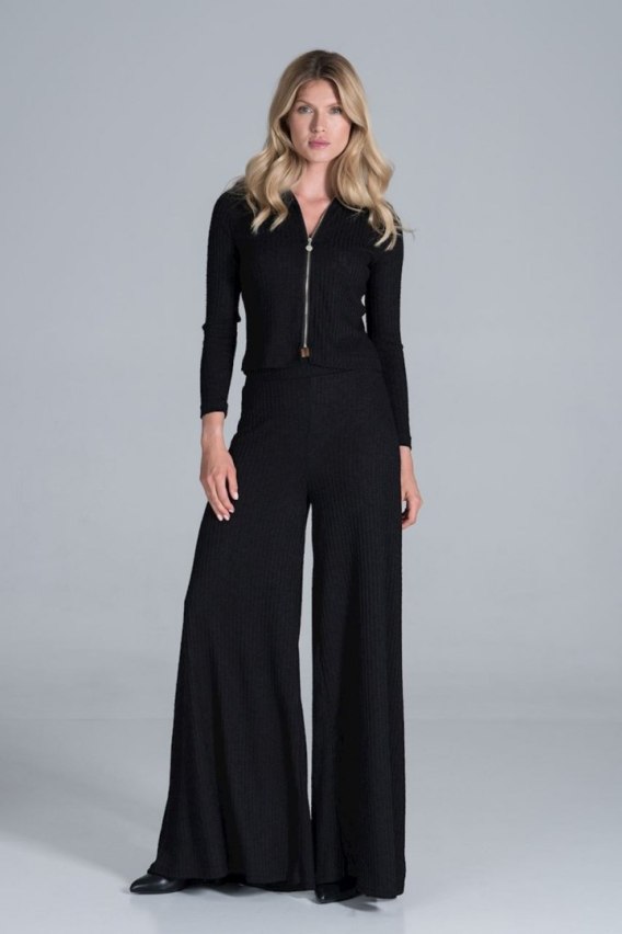 Spodnie Z Dzianiny Typu Dzwony Czarne